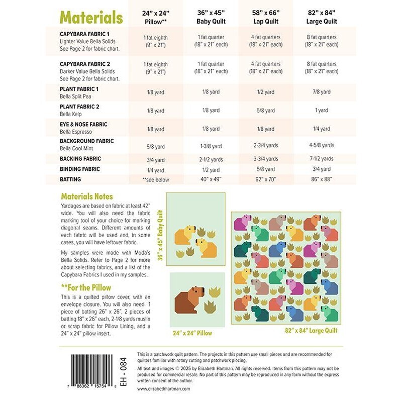 Capybara Club - Printed Quilt Pattern by Elizabeth Hartman