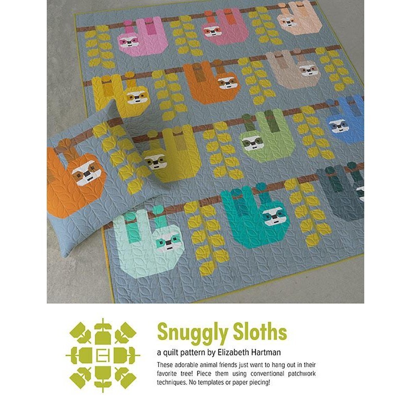 Snuggly Sloths - Printed Quilt Pattern by Elizabeth Hartman is a charming, modern quilting design that brings playful personality to your next project. Perfect for fans of Elizabeth Hartman patterns, this delightful printed quilt pattern helps you create an eye-catching quilt filled with sweet sloths and bold, graphic style.